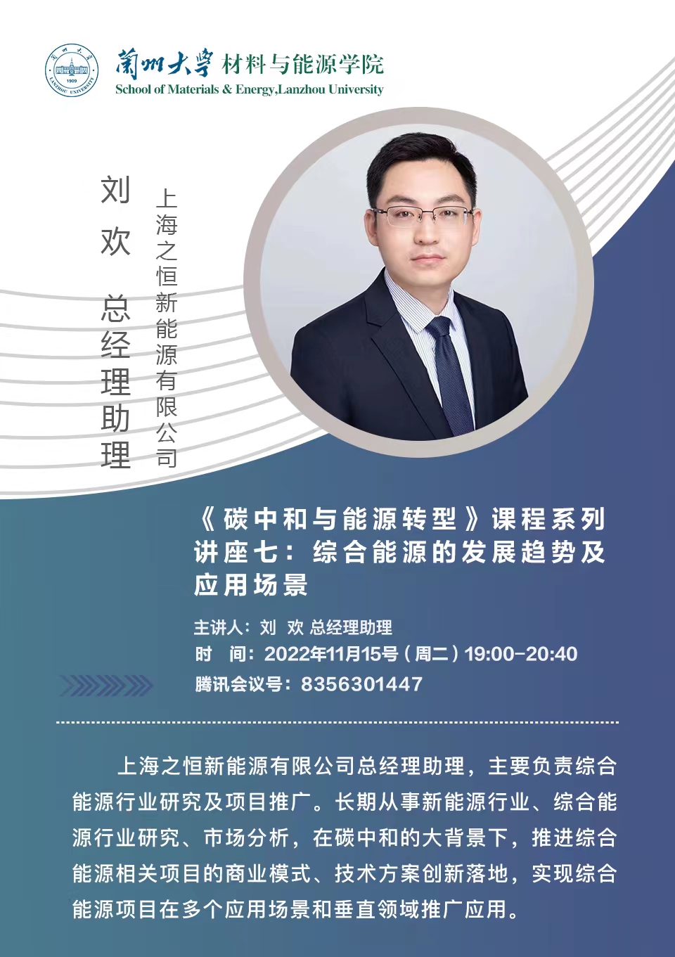 主讲人简介:上海之恒新能源有限公司总经理助理,主要负责综合能源行业研究及项目推广。长期从事新能源行业、综合能源行业研究、市场分析,在碳中和的大背景下,推进综合能源相关项目的商业模式、技术方案创新落地,实现综合能源项目在多个应用场景和垂直领域推广应用。