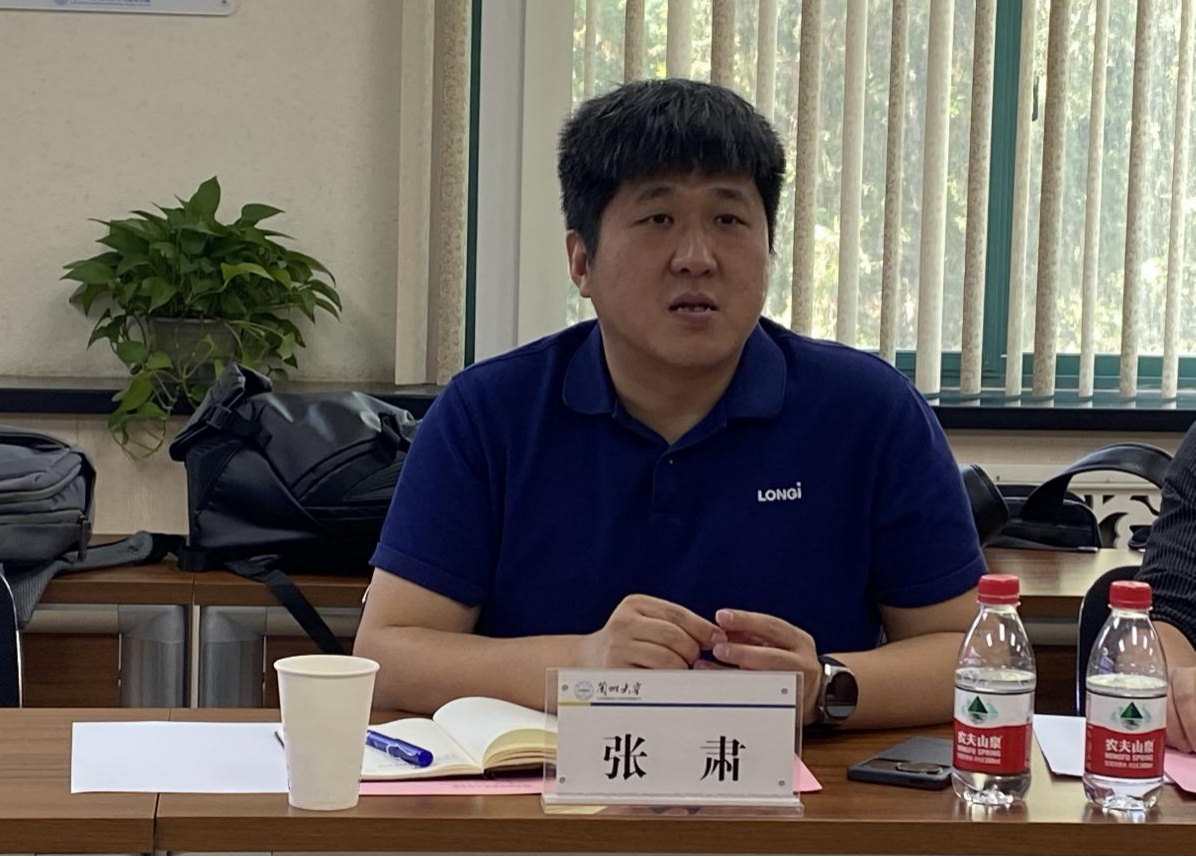 隆基绿能科技管理部负责人张肃简要介绍了隆基绿能的科技研发体系及企业需求。他表示,隆基绿能与体育平台官网有着深厚的情谊和良好的合作基础,期望与校方在光伏器件、储能等领域进一步加强合作,开展具有前瞻性的研究,共同探索培养高质量复合型人才的路径,打出“双向赋能”组合拳。