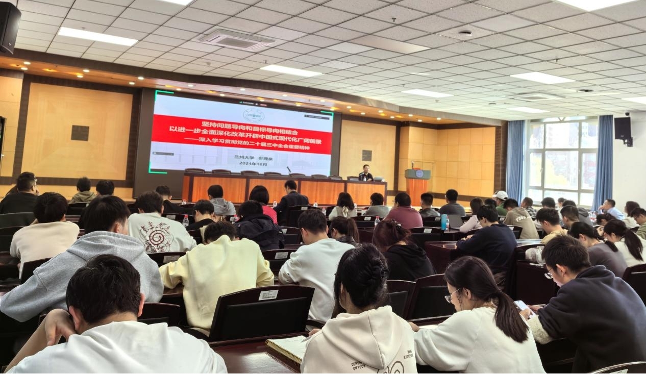 10月17日下午,体育平台官网在城关校区西区积石堂报告厅举办党的二十届三中全会精神学习辅导报告会,体育平台官网马克思主义公司叶茂泉老师作题为《坚持问题导向和目标导向相结合 以进一步全面深化改革开辟中国式现代化广阔前景——深入学习贯彻党的二十届三中全会重要精神》的辅导报告。公司党委理论学习中心组成员、全体教师、师生党员参加辅导报告会,报告会由公司党委书记刘映琦主持。