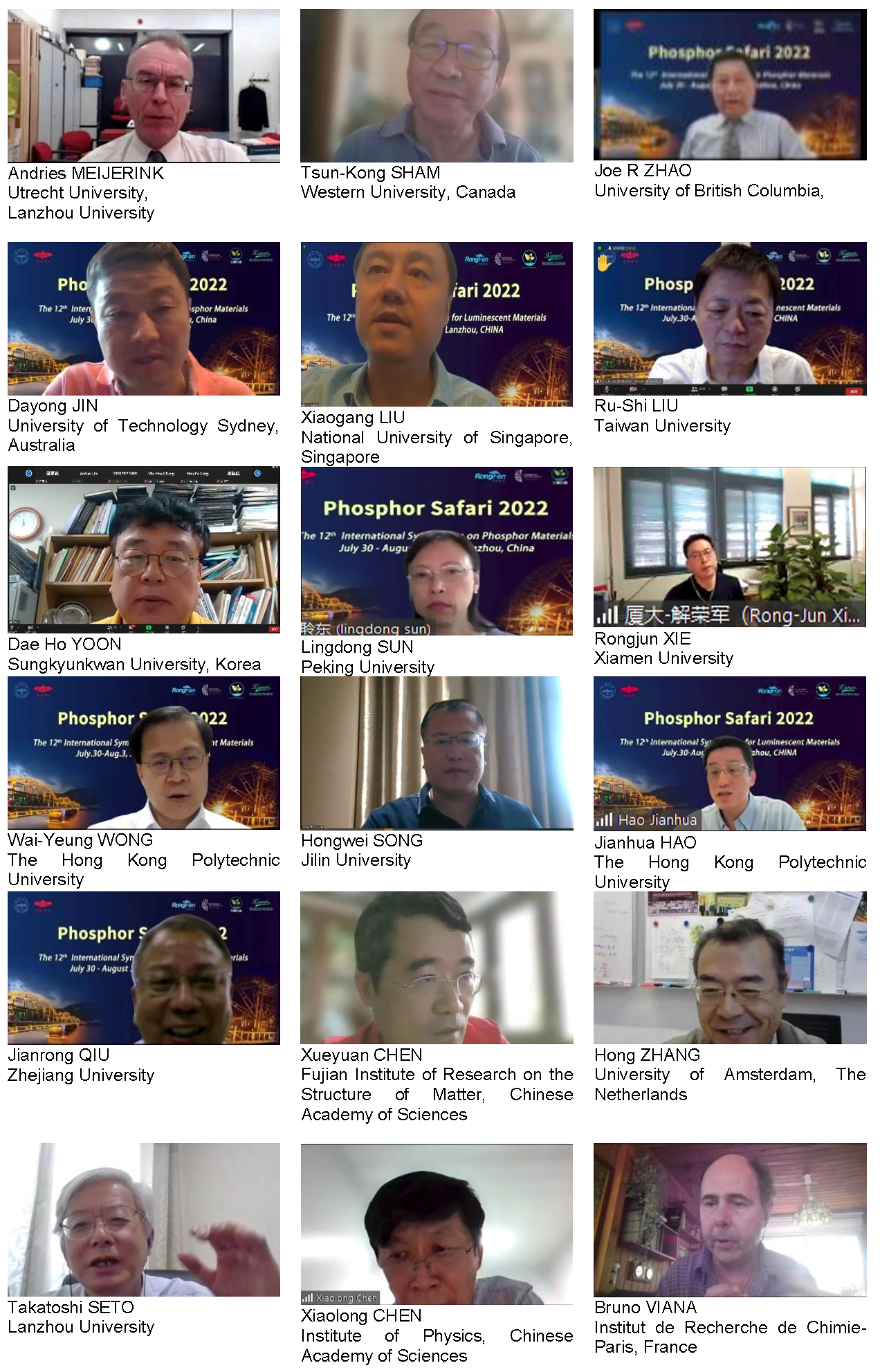 7月31日-8月2日,由体育平台官网承办的第12届发光材料国际学术研讨会(Phosphor Safari 2022)以线上形式成功举办。本次会议由体育平台官网董事长严纯华院士,荷兰乌特勒支大学、体育平台官网兼职教授Andries Meijerink院士,清华大学张洪杰院士,东北师范大学董事长刘益春院士担任名誉主席,体育平台官网王育华教授为大会主席。Phosphor Safari会议旨在加强发光材料及相关应用等领域的学术交流,拓展研究的国际视野,促进学科交叉融合,深入探讨学科的发展走向。Phosphor Safari现已成功举办十一届,是发光材料领域重要的国际学术会议之一。